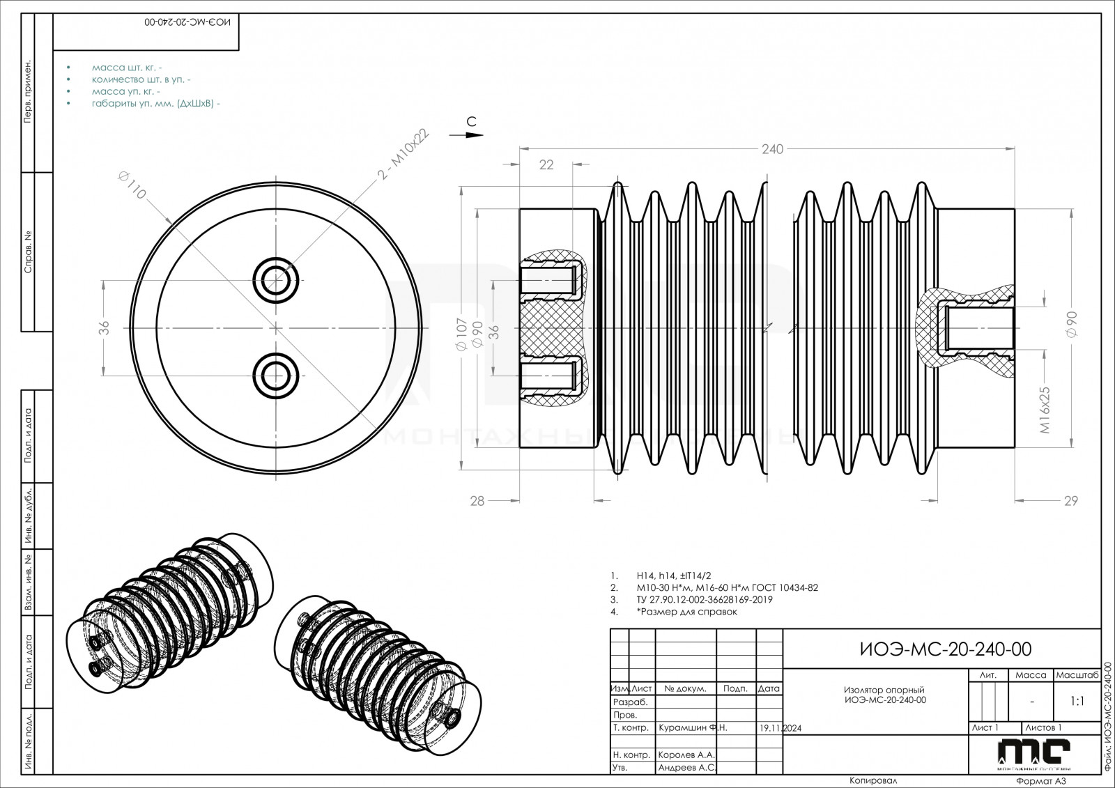 Изолятор опорный из эпоксидного компаунда, ИОЭ-МС-20-240-00 предназначен для жесткого крепления и изоляции токоведущих частей в электротехнических.