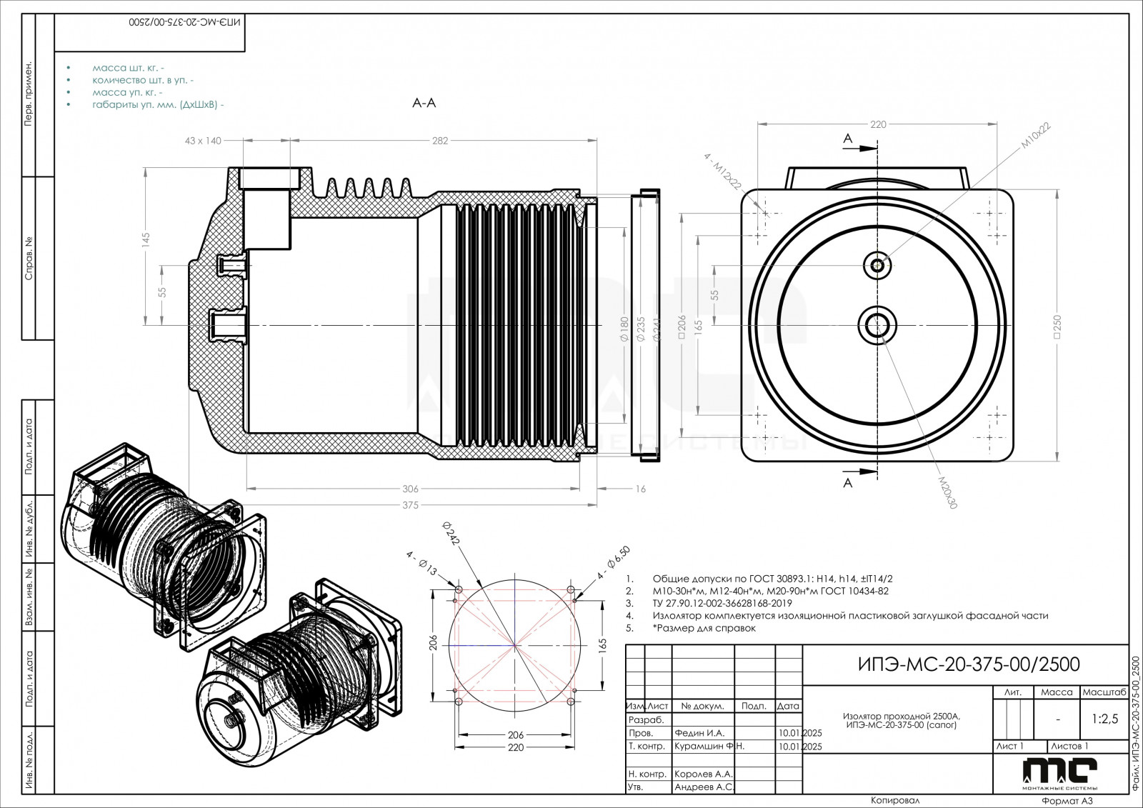 Изолятор проходной 2500А, ИПЭ-МС-20-375-00 (сапог)