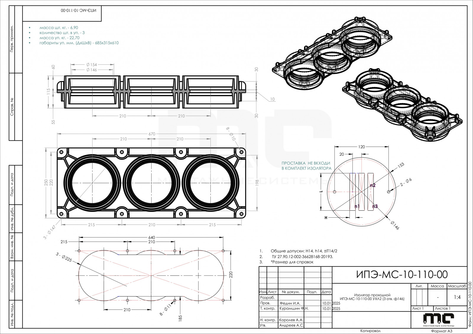 Изолятор проходной ИПЭ-МС-10-110-00 УХЛ2 (3 отв. ф146).