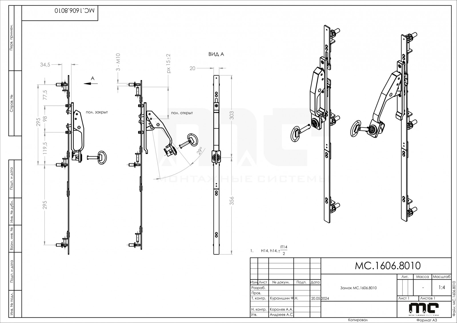 Замок МС.1606.8010 (многоточечной фиксации с рукояткой)