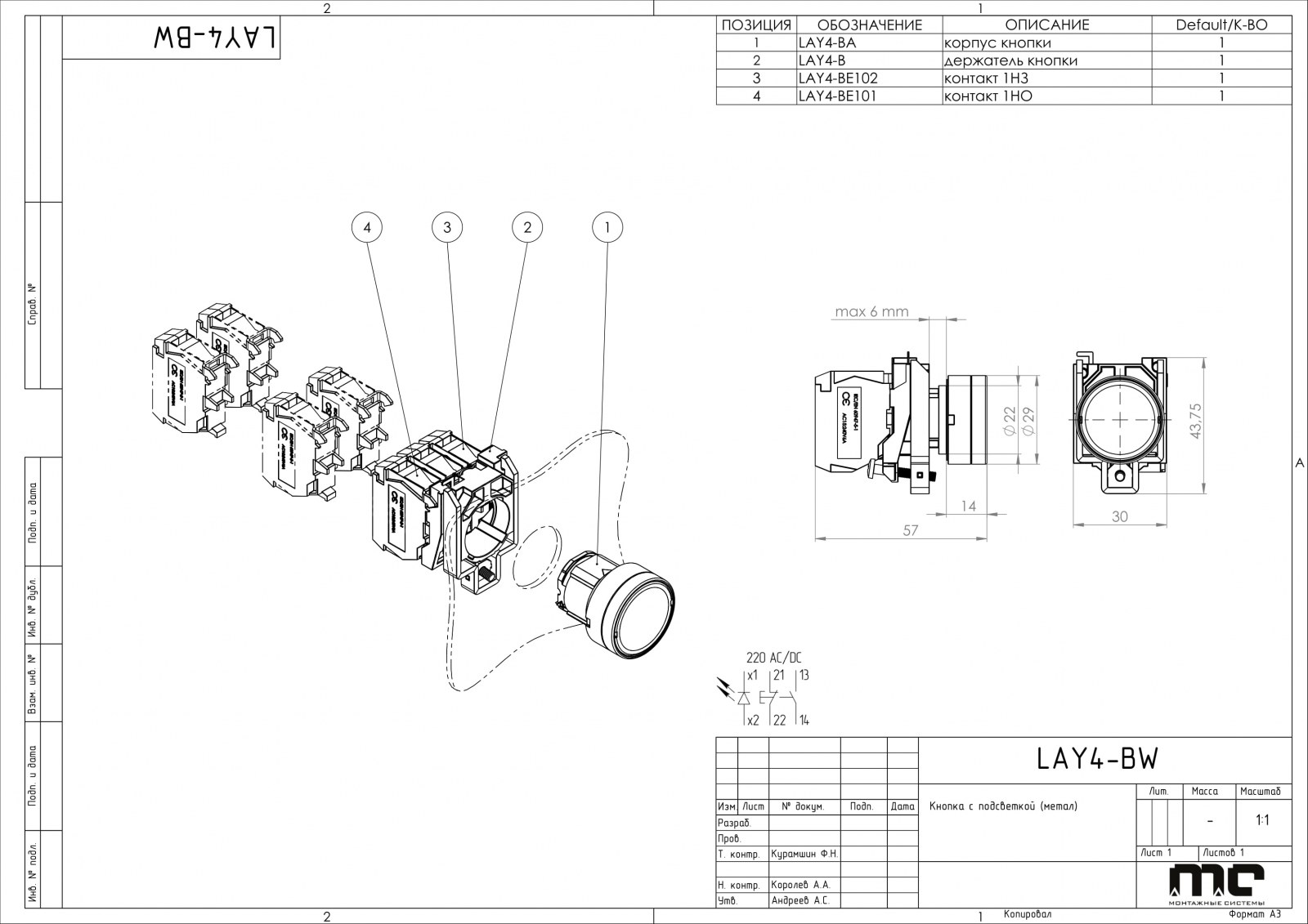 | LAY4-BW | 3665 | НО+НЗ | синий |