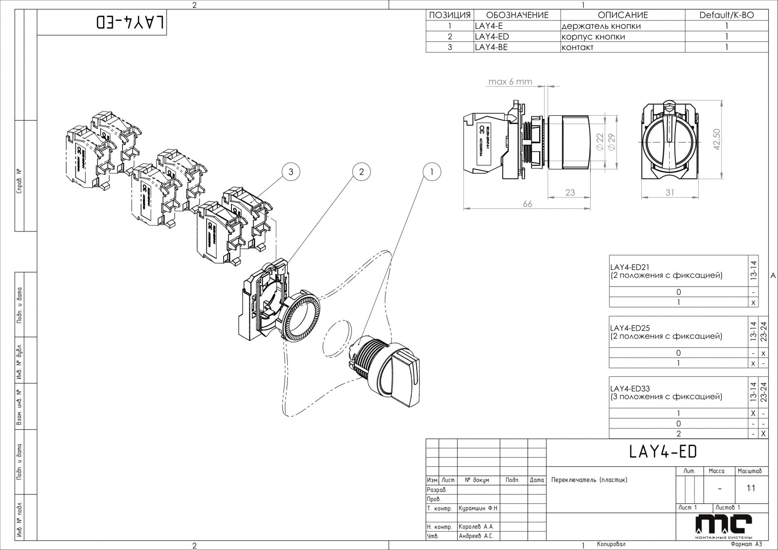 | LAY4-ED | 25 (2 положения с фиксацией) | НО+НЗ |