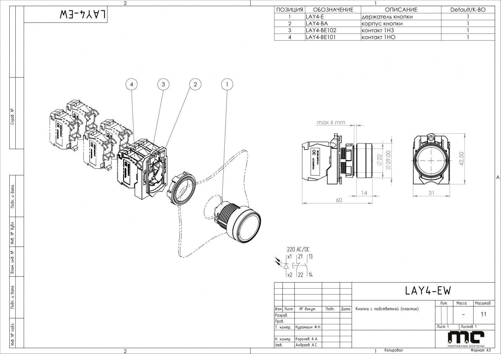 | LAY4-EW | 3365 | НО+НЗ | зелёный |