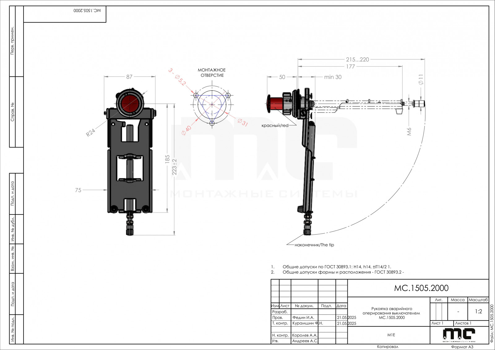 Рукоятка аварийного оперирования выключателем, тип: МС.1505.2000
