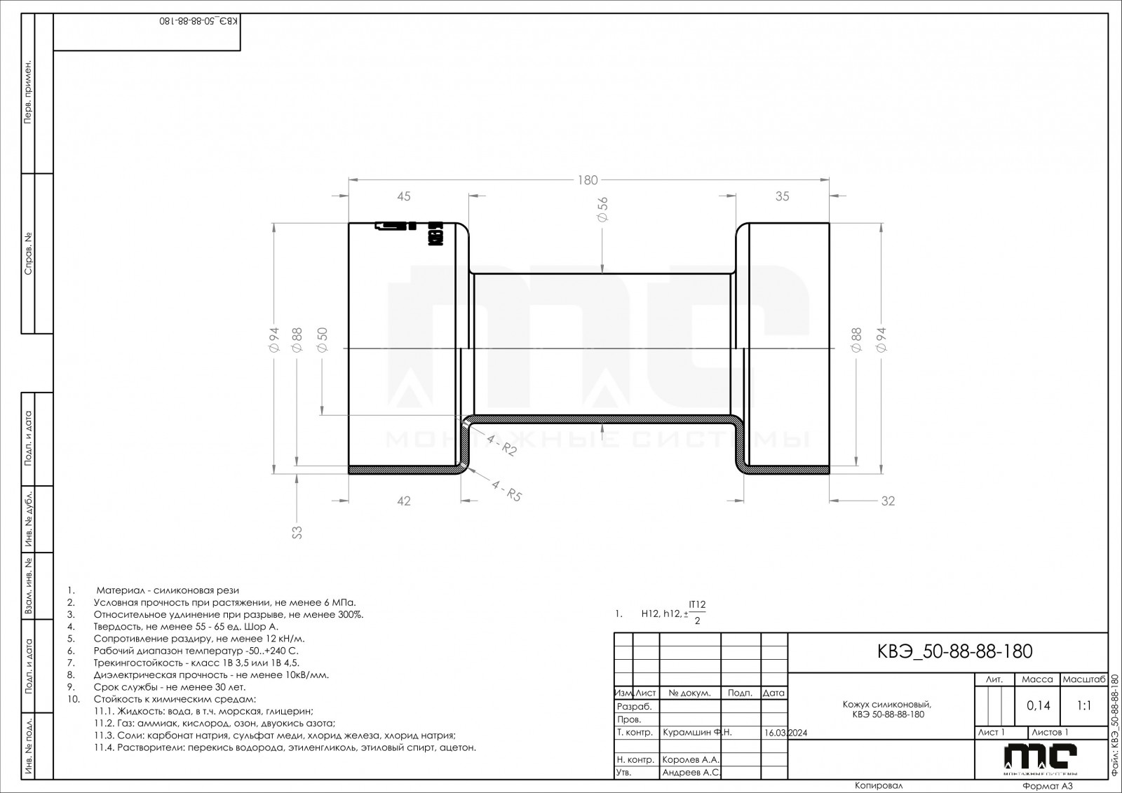 4. Твердость, не менее 55 - 65 ед. Шор А.