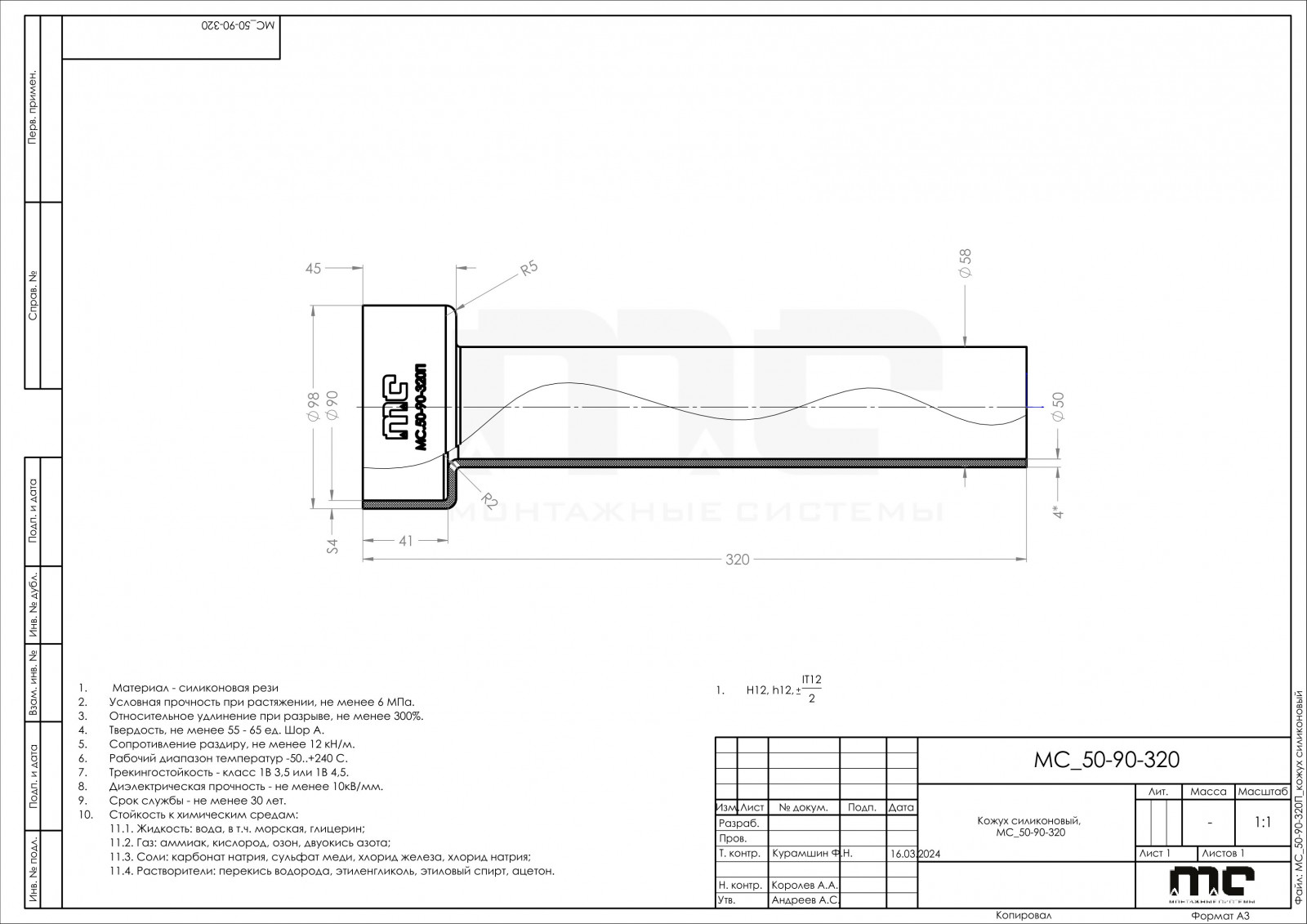 Кожух силиконовый, МС_50-90-320П, 1250А
