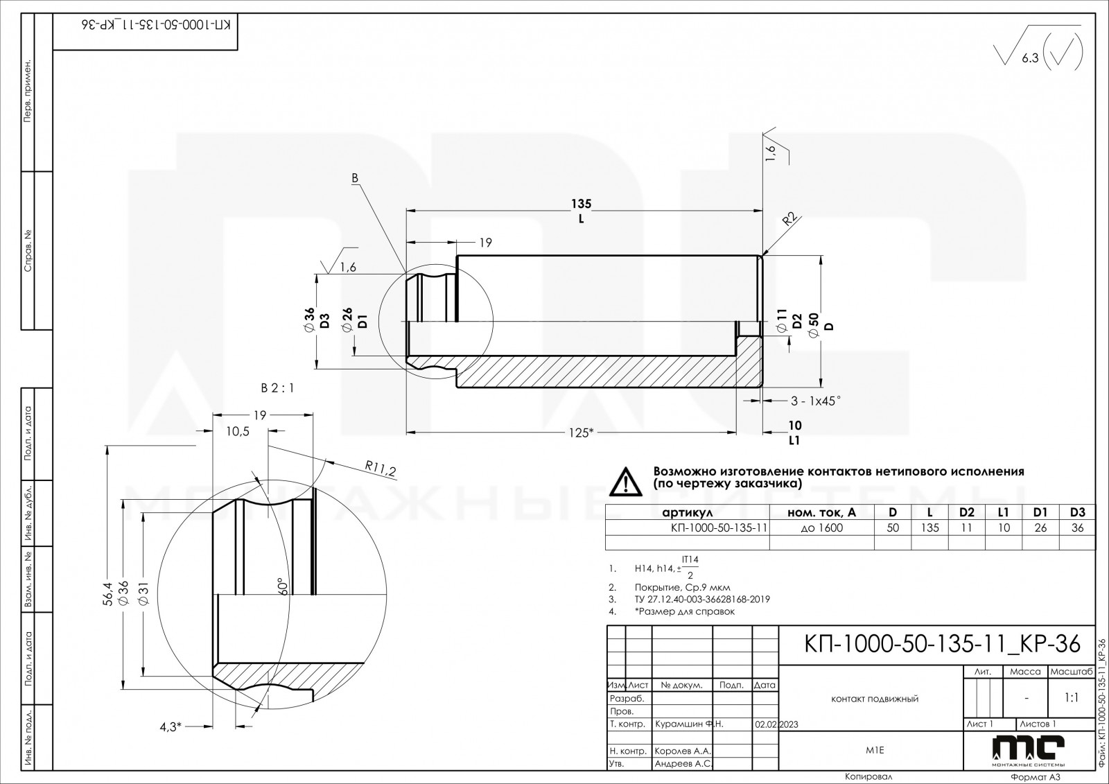 1. Номинальный ток, А - 1600