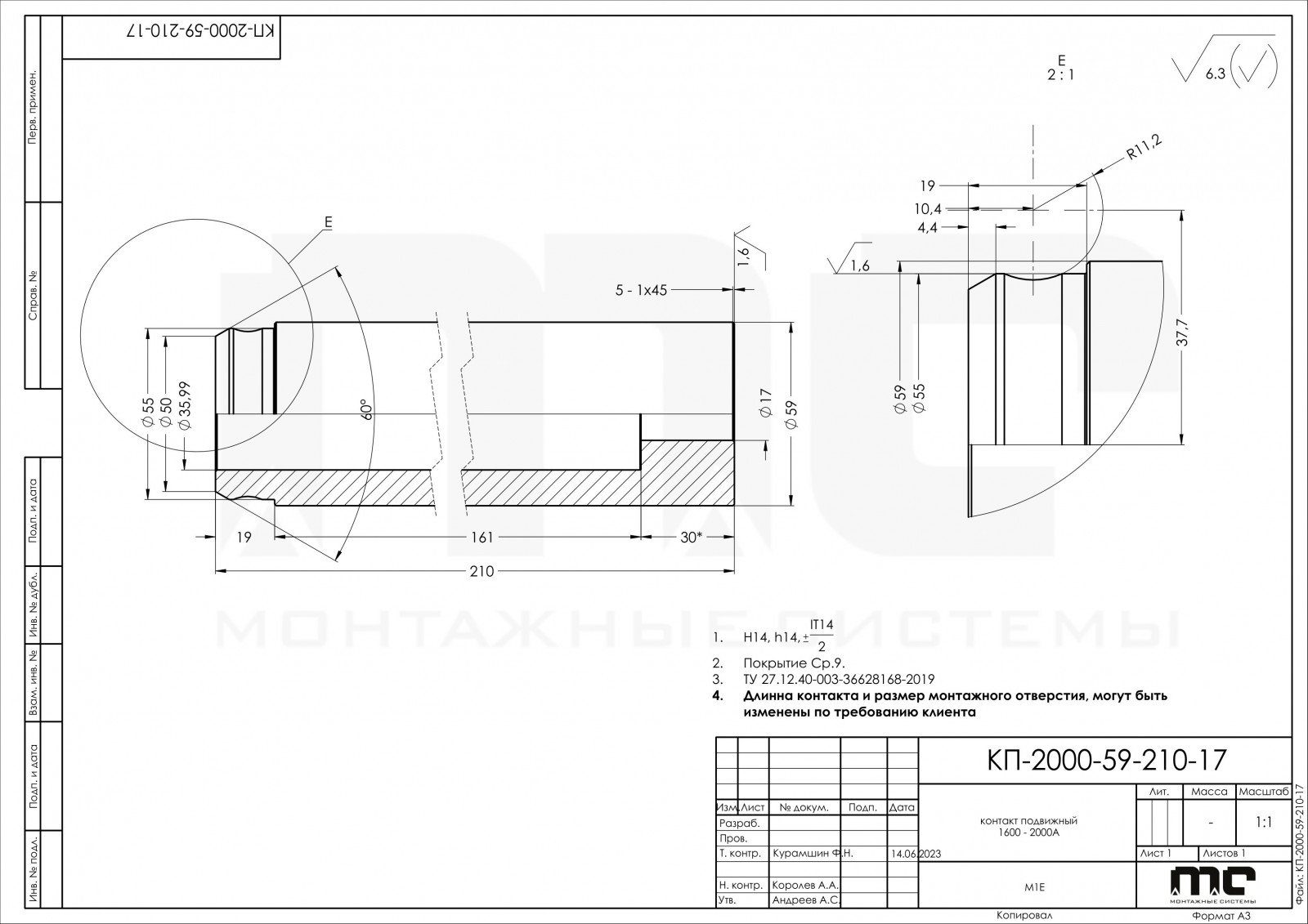 Длинна контакта и диаметр монтажного отверстия может быть изменен по требованию заказчика