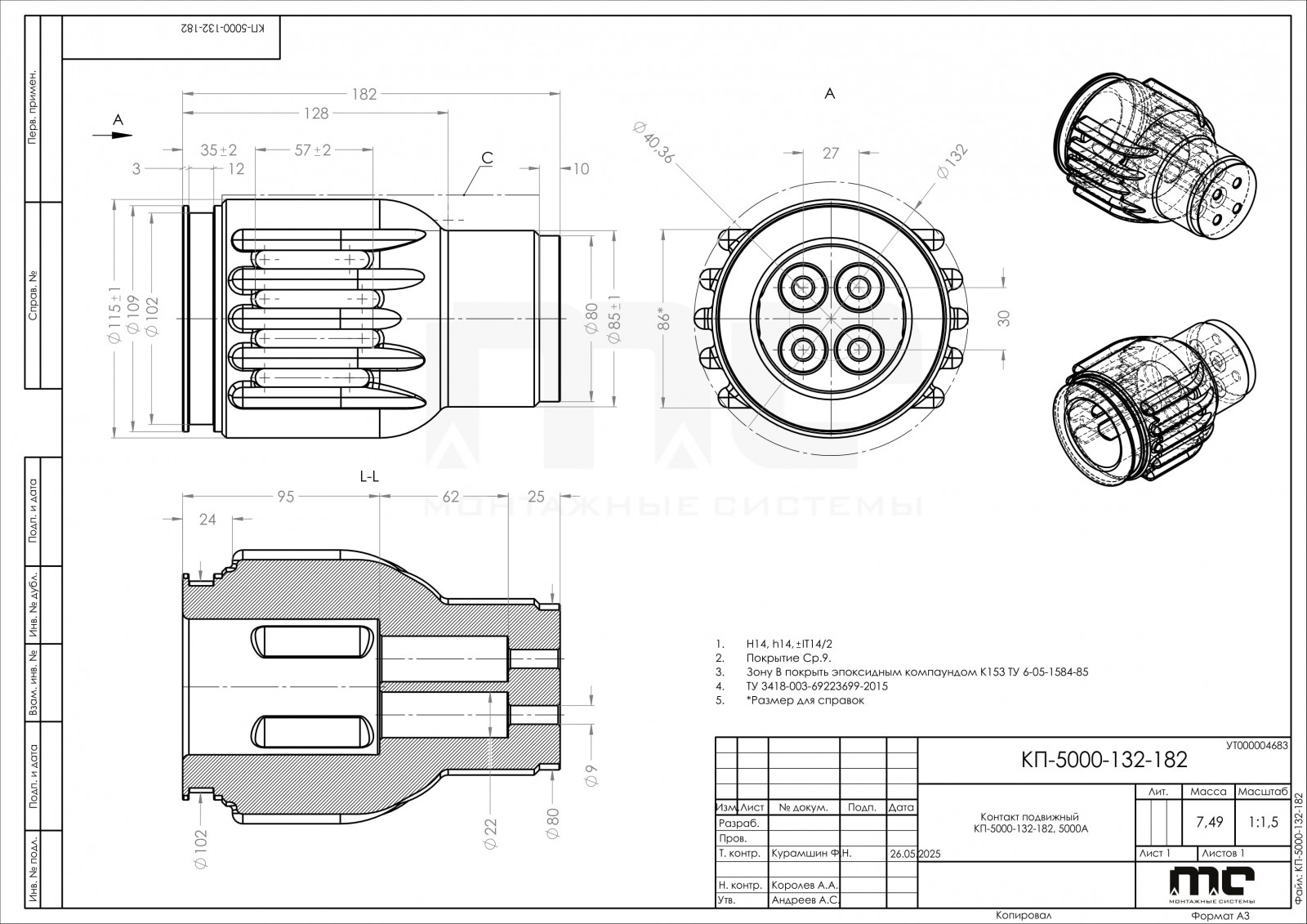 3. Длина, мм - 182