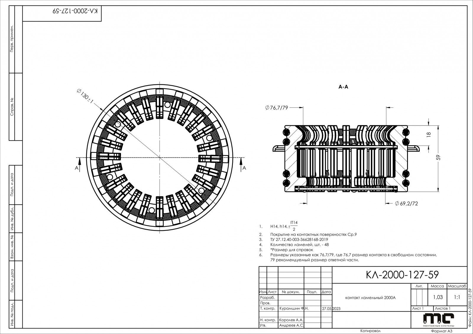 2. Покрытие ламелей в зоне контактов Ср. мкм - 60