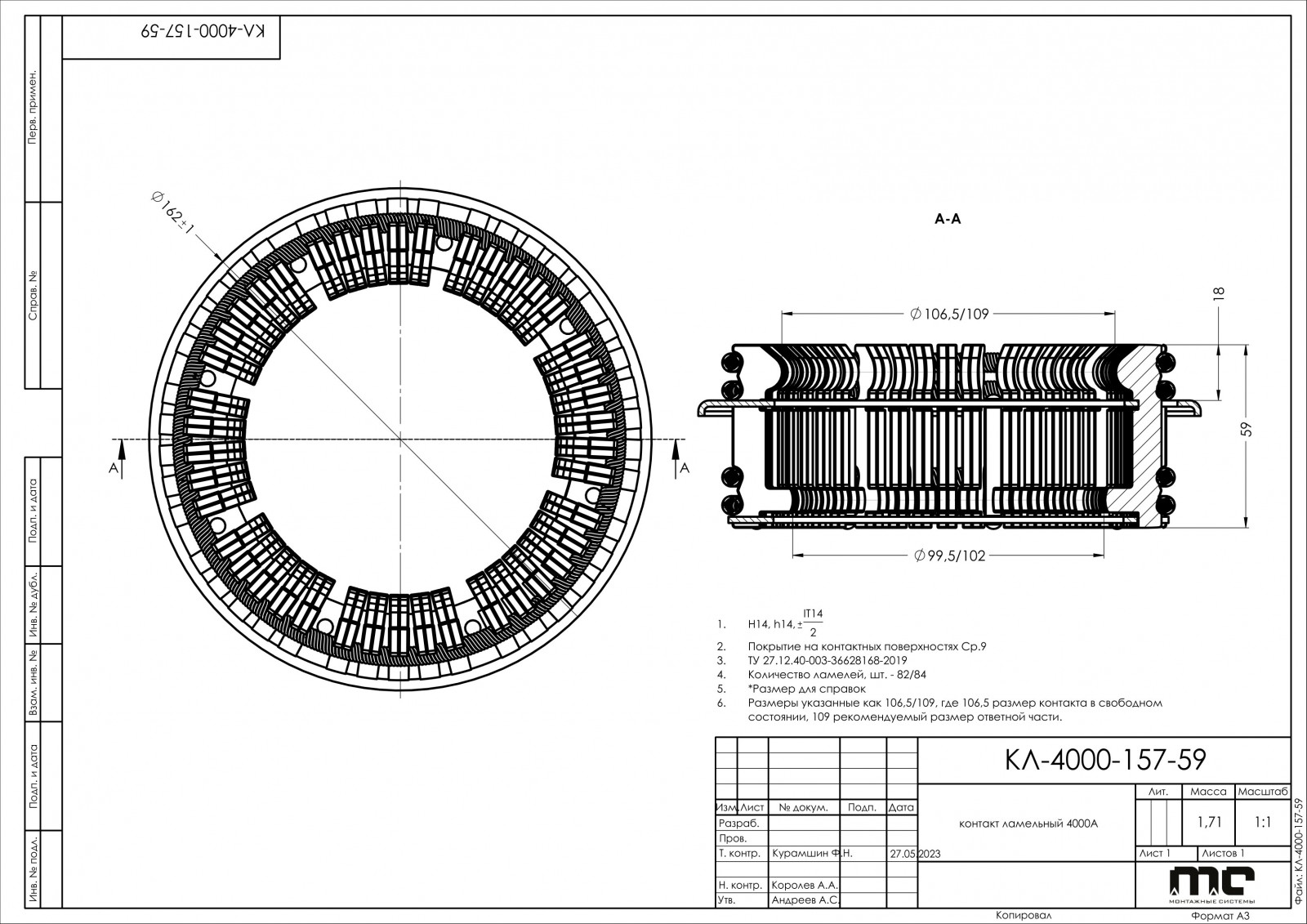 2. Покрытие ламелей в зоне контактов Ср. мкм - 60