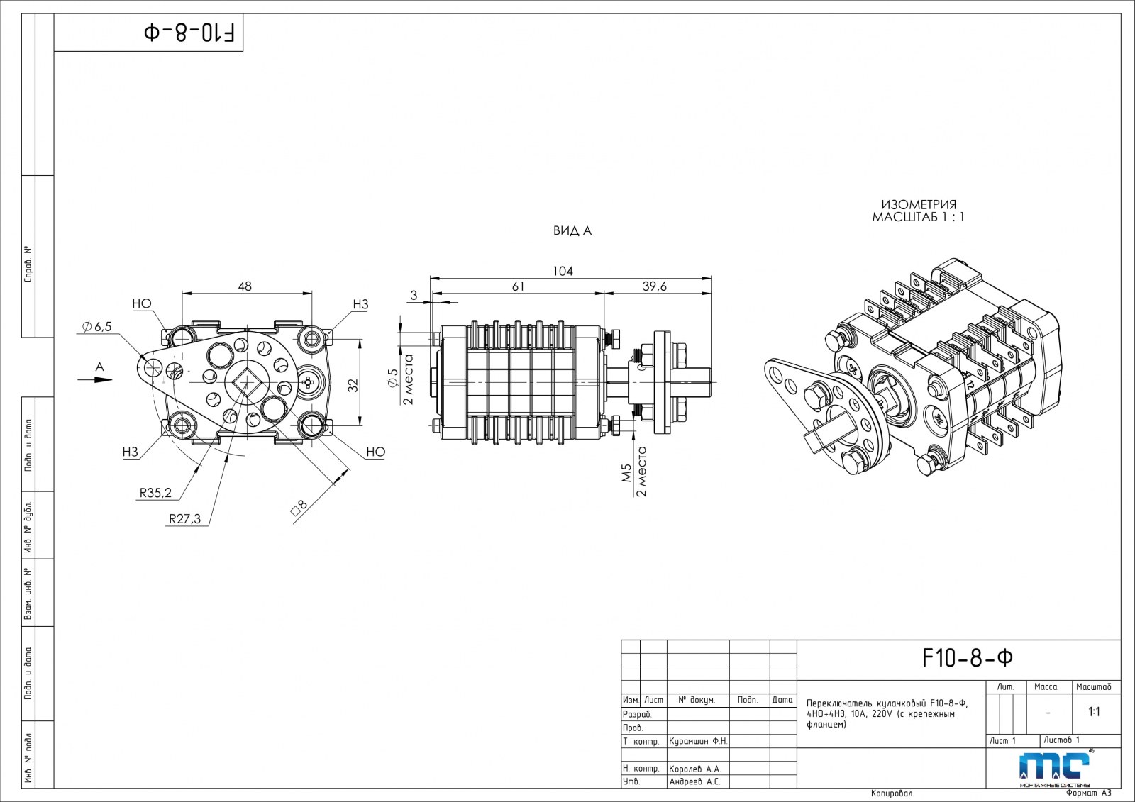 Переключатель кулачковый F10-8-Ф, 4НО+4НЗ, 10A, 220V (с крепежным фланцем)
