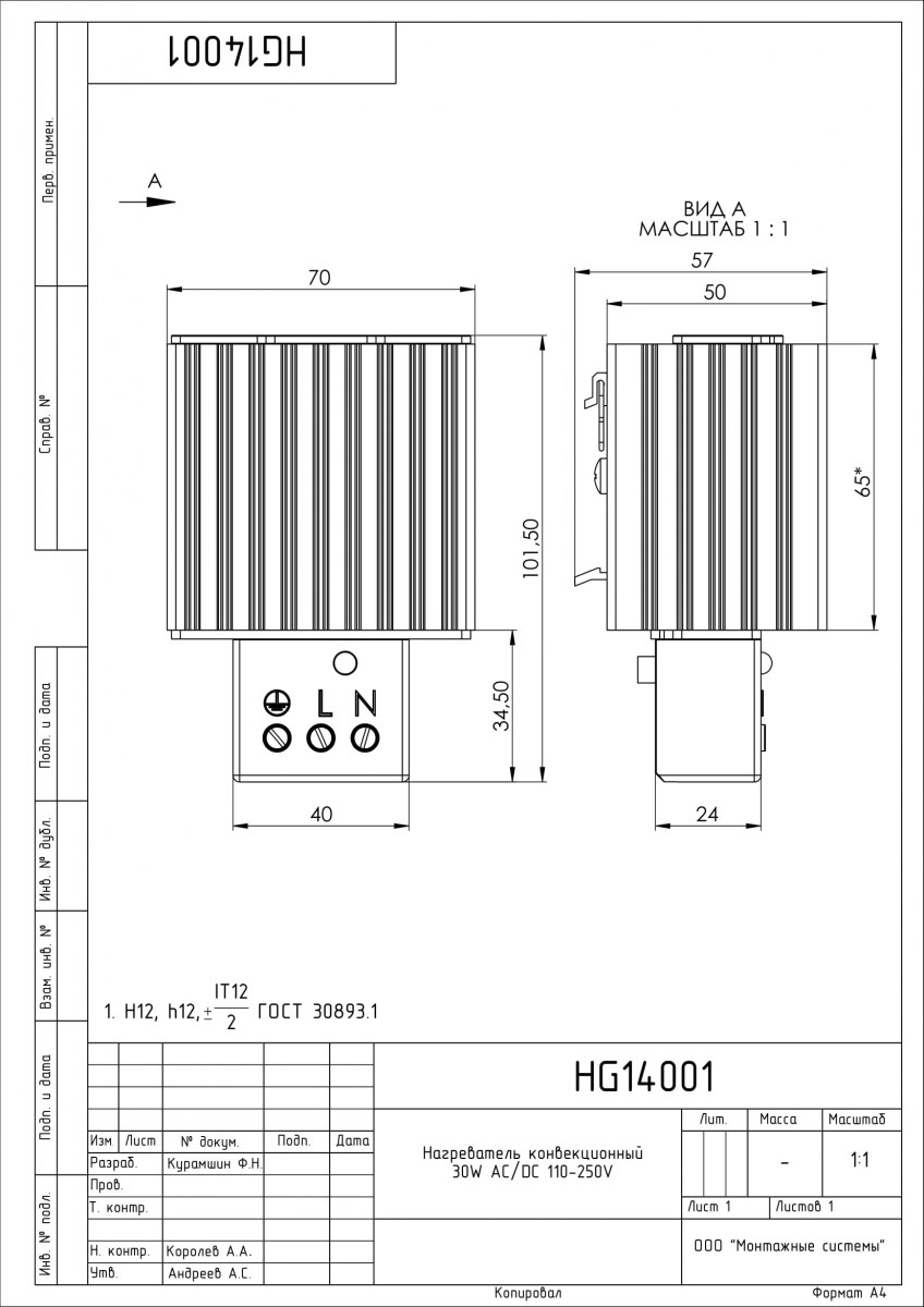 Нагреватель конвекционный, тип: HG 14001