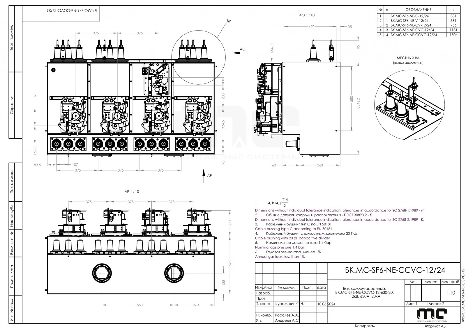 распределительного устройства среднего напряжения 6 - 24кВ, с газовой изоляцией SF6.