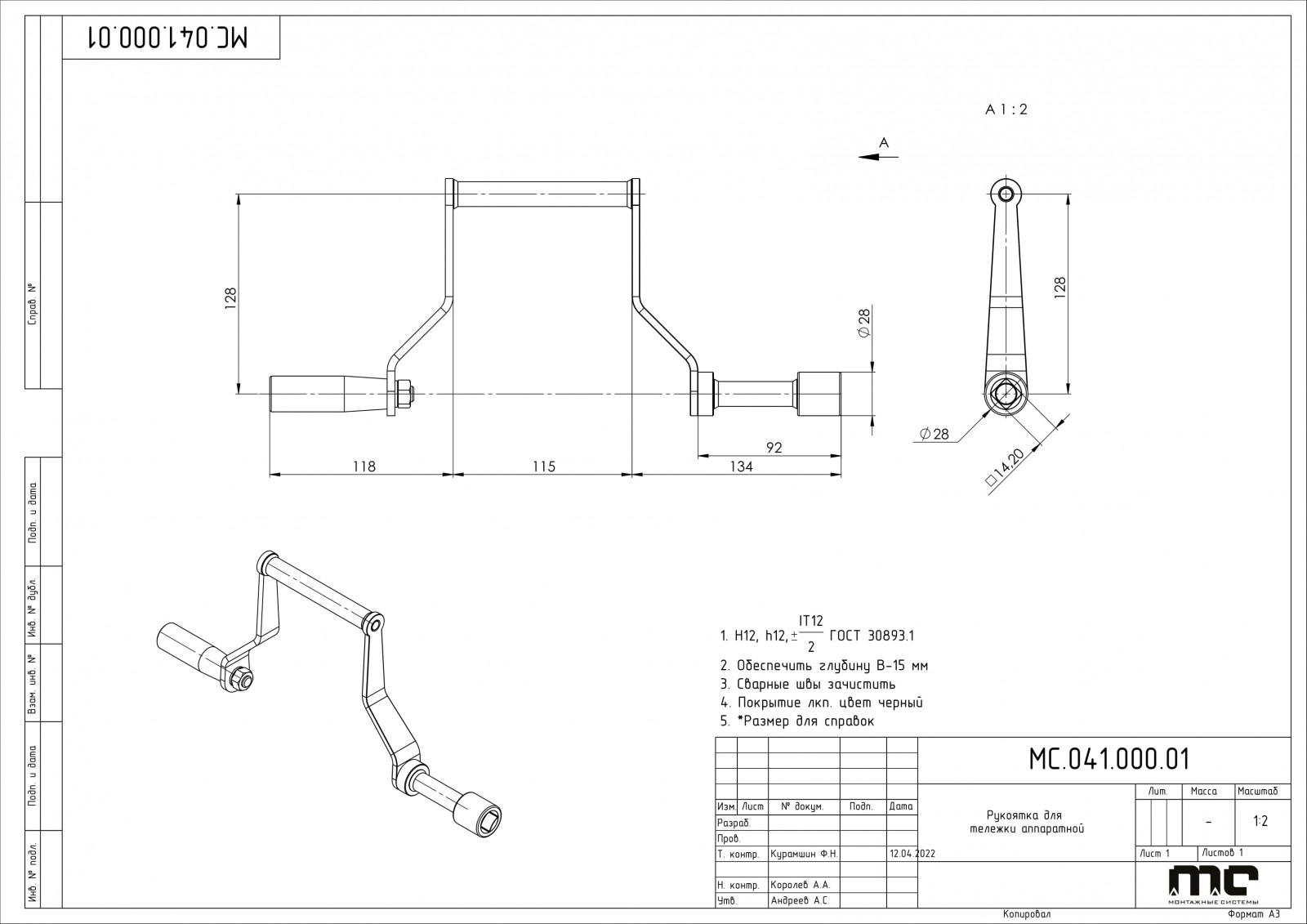 Рукоятка привода тележки по чертежу, МС.041.000.01