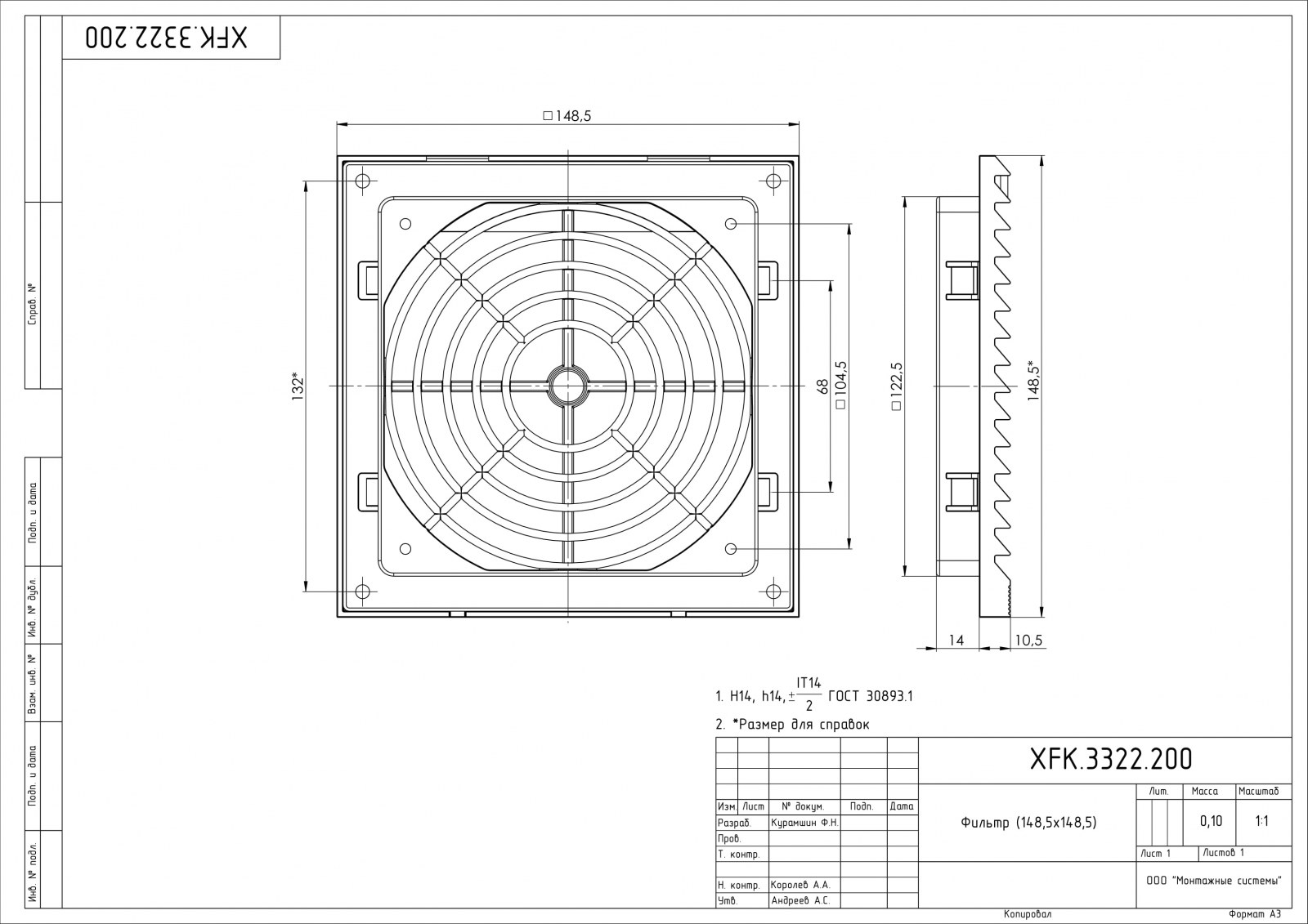 Фильтр XFK.3322.200 (148,5х148,5) экономичная альтернатива Rittal 3238.200, 3322.207. Фильтр XFK.3322.200 (148,5х148,5) используется совместно с Вентилятор с фильтром XFK.3322.100 (55 м3/ч).