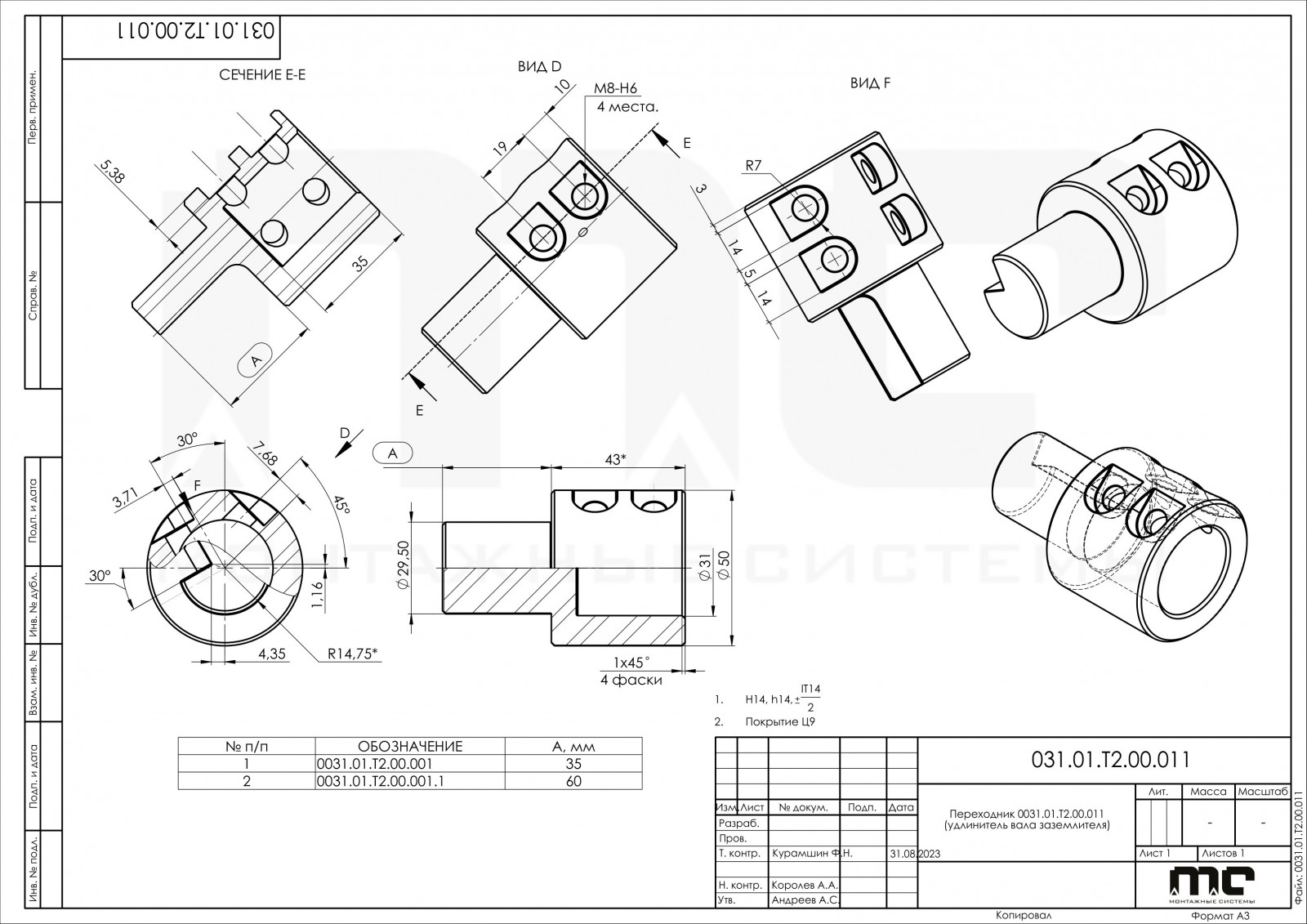 Переходник удлинитель вала, предназначен для удлинения вала заземлителя, позволяет установить заземлитель в любой плоскости не зависимо от типа привода.