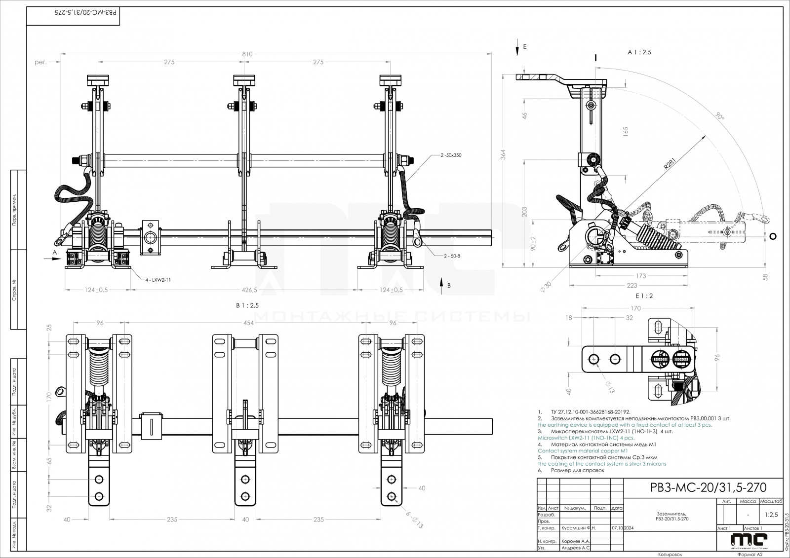 Быстродействующий заземлитель, тип: РВ3, предназначен для работы в составе комплектных распределительных устройств, в сетях трехфазного переменного тока с частотой 50 Гц, номинальным напряжением 10 кВ, с изолированной, заземленной через дугогасительный реактор или резистор нейтралью.