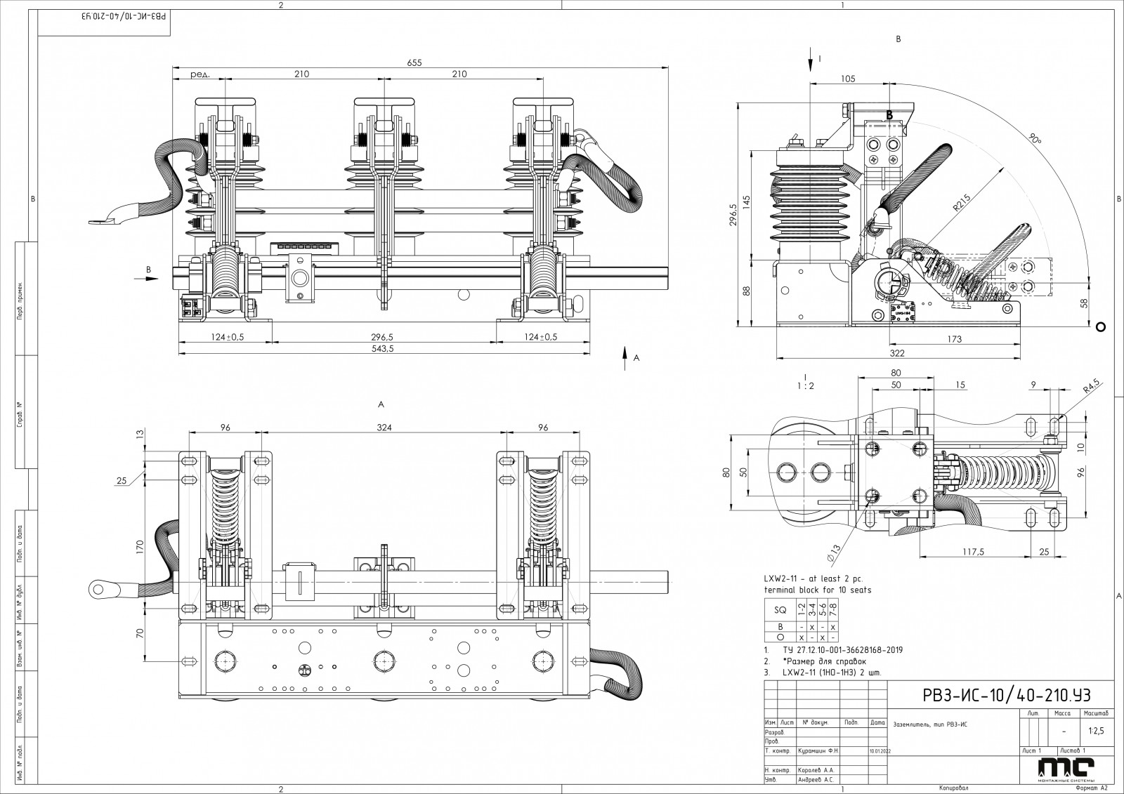 Быстродействующий заземлитель, тип: РВ3-ИС, с установленными опорными изоляторами с емкостным делителем, предназначен для работы в составе комплектных распределительных устройств, в сетях трехфазного переменного тока с частотой 50 Гц, номинальным напряжением 10 кВ, с изолированной, заземленной через дугогасительный реактор или резистор нейтралью.