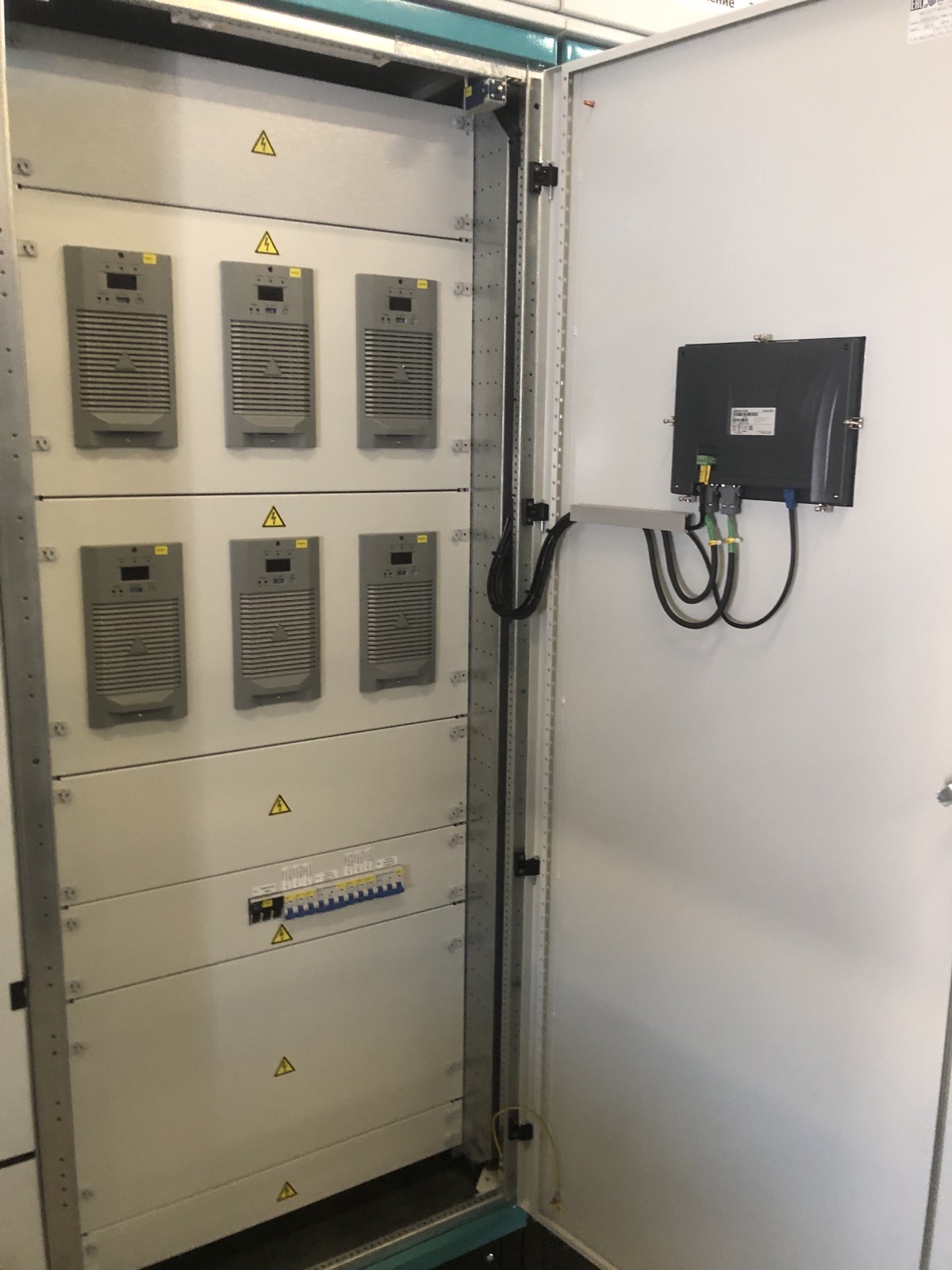 В шкафу оперативного тока установлены герметизированные свинцово-кислотные аккумуляторные батареи. Батареи являются необслуживаемыми на протяжении всего срока эксплуатации, имеют ударопрочный корпус, изготовленный из пластмассы ABS и предохранительный клапан для управляемого выброса газа.