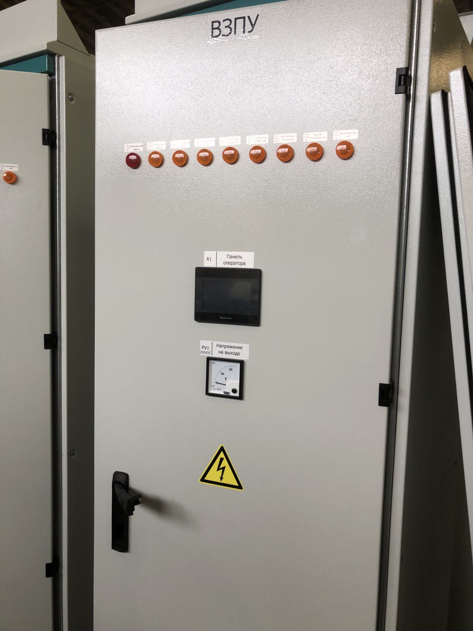 ЗВУ-ТН выполнено в напольном металлическом шкафу габаритами 800х800х2200 мм. Конструкция шкафа обеспечивает защиту от доступа к токоведущим частям, находящимся под высоким напряжением или имеющим значительный запас энергии. При открытых дверях случайный контакт с токоведущими элементами также затруднён.
