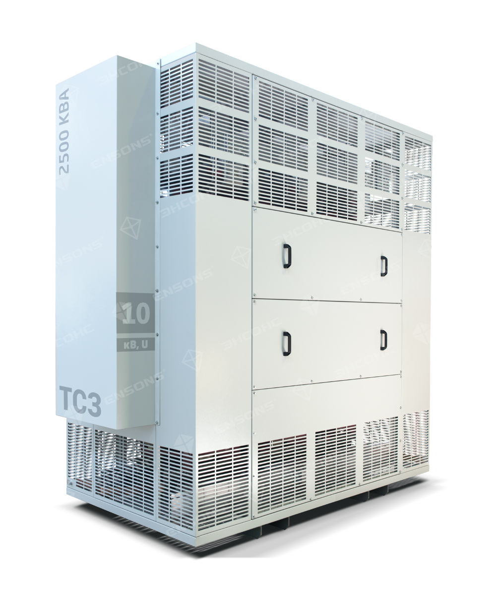 Трехфазные сухие трансформаторы с воздушно-барьерной изоляцией с переключением без возбуждения (ПБВ), предназначены для преобразования электрической энергии в электросетях трехфазного переменного тока частотой 50 Гц. Регулирование напряжения до ±5% ступенями по 2,5% ПБВ происходит путем перестановки перемычек.
