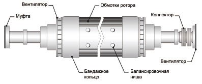 • ротор – вращающийся компонент, находящийся под воздействием динамических механических, а также термических и электромагнитных нагрузок.